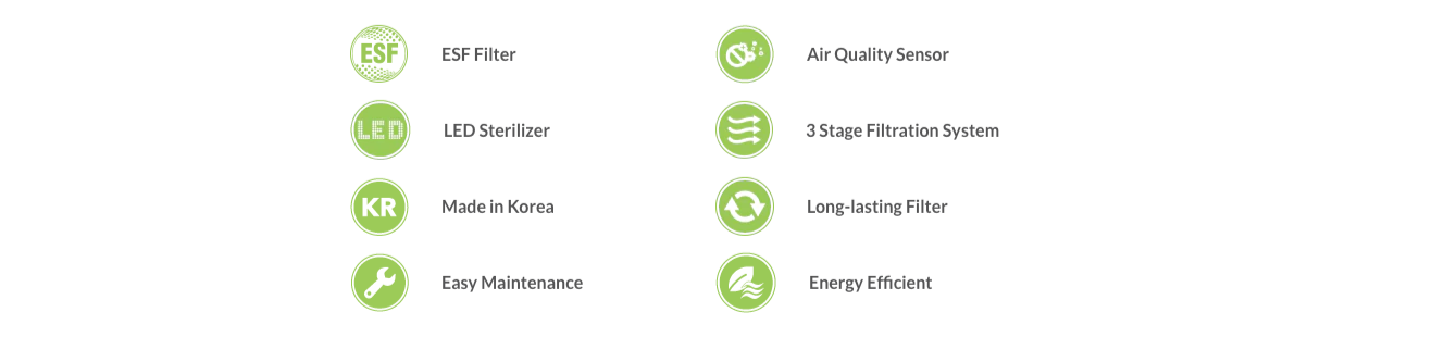 - Our innovative ESF filter technology produces zero ozone & zero carbon